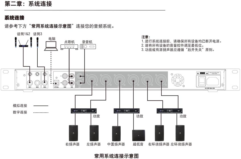 8、六路輸出:右、左、中置、超低音、右環(huán)繞與左環(huán)繞