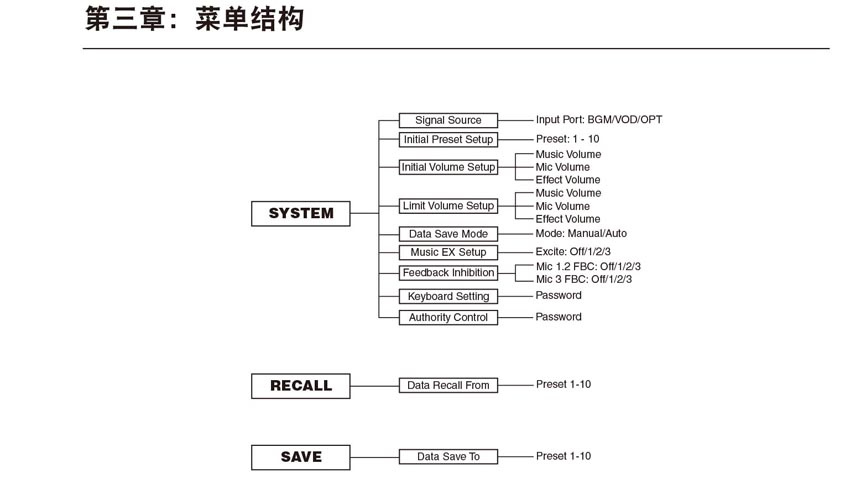 3、每路話筒輸入均設(shè)有三級(jí)反饋抑制