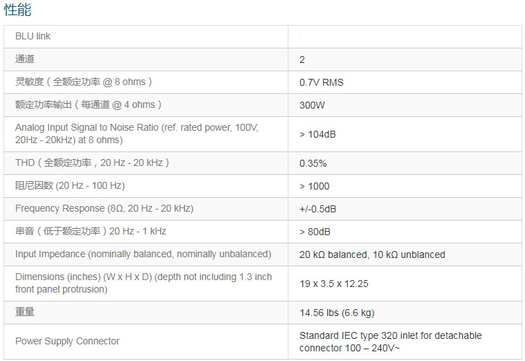 模擬+BLU link 輸入,2通道,300W/輸出通道