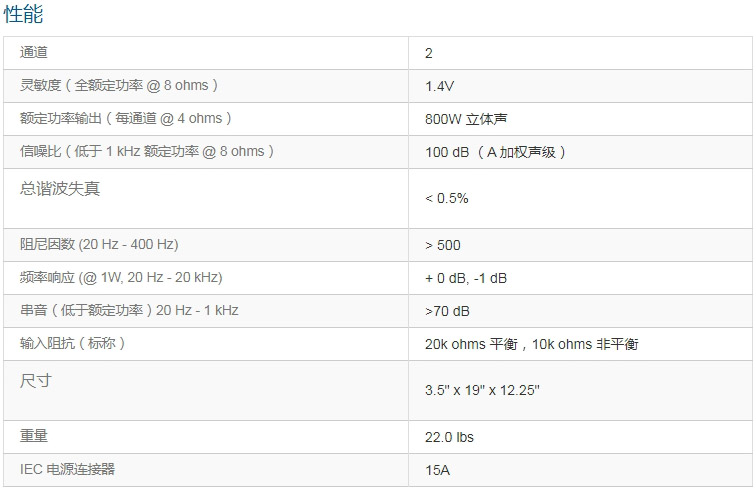 雙通道、800W @ 4Ω,支持70V/140V定壓的功放